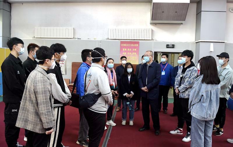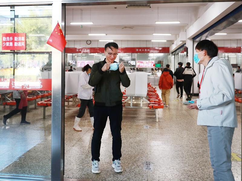 10月4日,在第六轮核酸检测现场,党委书记赵琳为建筑工程学院学生开展了防疫主题教育。赵琳书记说,在抗击疫情的关键时期里,每个位置都是阵地,每个岗位都是堡垒,每名同学都是战士,每次行动都是战斗。学校要有责任担当的勇气、科学防控的智慧和统筹组织的能力,同学们更要有战胜疫情的坚定信念,严阵以待、齐心协力,坚决打赢这场狙击战、歼灭战。在现场,赵琳书记还认真询问了同学们在学校实行“静态管理”后的线上听课效果、日常基本生活和健康状态等,鼓励学生在防疫特殊时期要做好个人防护,多参加户外体育活动,保证身心健康。