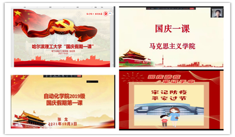 金秋十月,举国共庆祖国72岁华诞。在这个美丽的国庆假期里,哈尔滨市民正经历着紧张的抗疫斗争,学校把严防严控新冠疫情和全面做好学生的身心健康、安全稳定和服务保障工作作为国庆假期的中心工作,全面落实省教育厅关于上好“国庆假期一课”工作要求,层层部署、层层动员,广泛深入地开展了内容丰富、形式多样的“国庆假期一课”活动。“国庆假期一课”既有普及防疫知识、赞誉祖国繁荣昌盛的主题教育;也有“学党史办实事”,领导干部、教师深入学生共度国庆假期的关怀,更有青年学生喜爱的趣味运动、互动交流等活动。特别是在饮食、洗浴、文体娱乐等关系到学生切身实际的生活方面,学校提出了更高的工作标准和更细的要求,制定了保障工作方案,千方百计保证学生虽然因疫情封闭在校园,但更要度过一个祥和、温暖、愉快、安全、充实的国庆假期。