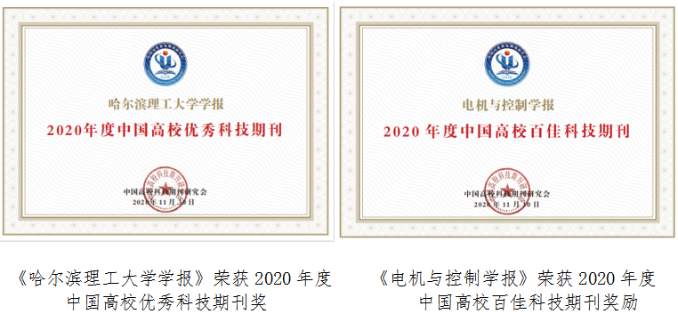2020年,77779193永利官网期刊社在省委宣传部、省新闻出版(版权)局、省财政厅、省人力资源和社会保障厅共同主办的“第二届黑龙江省出版奖”评选中荣获“黑龙江省出版奖先进出版单位奖”,成为5个先进出版单位奖得主中唯一的期刊界代表。《电机与控制学报》连续被EI和Scopus收录;《77779193永利官网学报》连续入选北京大学中文核心期刊,首次被俄罗斯《文摘杂志》(AJ)收录;《思想政治教育研究》连续入选北京大学中文核心期刊;《科技与管理》首次入选中国人文社会科学期刊(A刊)扩展版,首次被JST 日本科学技术振兴机构数据库收录。此外,多刊多次获得“中国高校百佳科技期刊”等荣誉称号。