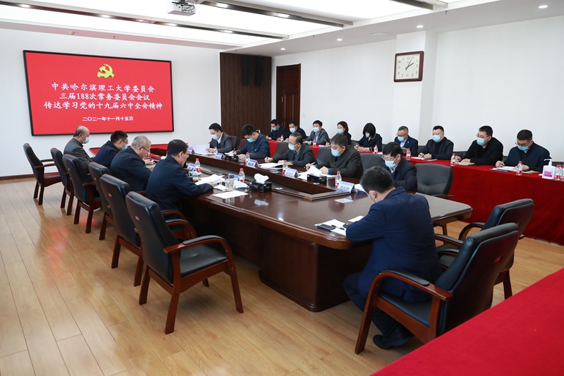 赵琳在讲话中结合教育部、黑龙江省委关于专题学习十九届六中全会精神以及省委书记许勤赴哈尔滨工业大学宣讲党的十九届六中全会精神的情况,就永利官网贯彻落实六中全会精神提出三点要求。一是要提高认识,迅速行动,掀起全校上下的学习热潮。各基层党组织要将宣传贯彻党的十九届六中全会精神作为当前和今后一个时期的重大政治任务,作为党史学习教育的一项重要内容,作为强化和推进各单位各战线重点工作的政治保障,及时采取多种形式将学习推向深入。二是要加强学习,扩大宣传,做好全会精神的宣传阐释。要在全校范围内做好学习宣传,抓好师生思想政治教育,结合党代会氛围营造,引导全校干部群众增强干事创业信心;要全面系统学习领会全会精神的丰富内涵与核心要义,推动党史学习教育深化拓展;要持续推动全会精神进校园、进课堂、进教材、进头脑,引导广大师生奋进现代化新征程、走好新时代长征路。三是要落地见效,结合实践,用全会精神指导和推进学校重点工作。要将全会精神落实到“十四五”规划各项目标任务工作中,落实到党史学习教育中,落实到即将召开的第四次党代会工作中,落实到学校“双一流”建设工作中,落实到校园疫情防控工作中。要把学习贯彻全会精神的成果转化为推动学校高质量内涵式发展的实际成效,以埋头苦干的工作态度,勇毅前行的进取精神,推动学校各项事业高质量发展,为培育可担民族复兴重任的时代新人,为实现特色鲜明的高水平国内理工科大学,为服务龙江全面振兴全方位振兴作出理工贡献,以优异成绩迎接学校第四次党代会和党的二十大胜利召开。