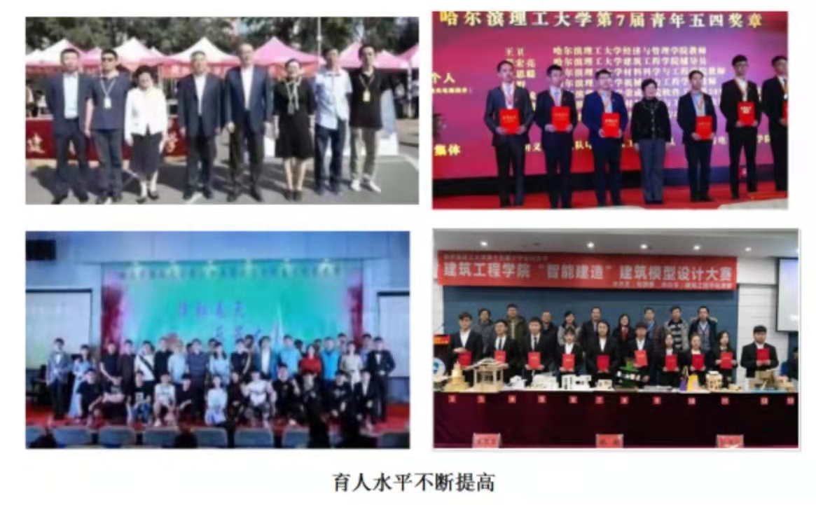 学院教育教学工作取得丰硕成果,人才培养质量稳步提高。“装配式挡水墙虚拟仿真实验”项目获批省级虚拟仿真实验项目,并被推荐参加国家级虚拟仿真项目的评选,是2019年我省推荐到国家的唯一一个土木工程专业虚拟仿真实验项目。建筑学专业获批 2019 年光辉城市(重庆)科技有限公司教育部产学合作协同育人项目“建筑虚拟现实教学综合实训实践基地建设”项目。学院组织教师参加教学研究与改革工作,获批黑龙江省新世纪高等教育教学改革工程项目、黑龙江省高等教育学会教学改革项目等项目20余项,发表教改论文30余篇,编写教材并正式出版40余部,获得黑龙江省高等教育教学成果二等奖2项、省教育厅“集体教学管理质量奖”1项。“建筑设计”基础课获2017年建筑学专业指导委员会教案展“优秀教案”奖、黑龙江省高教学会教学成果一等奖。