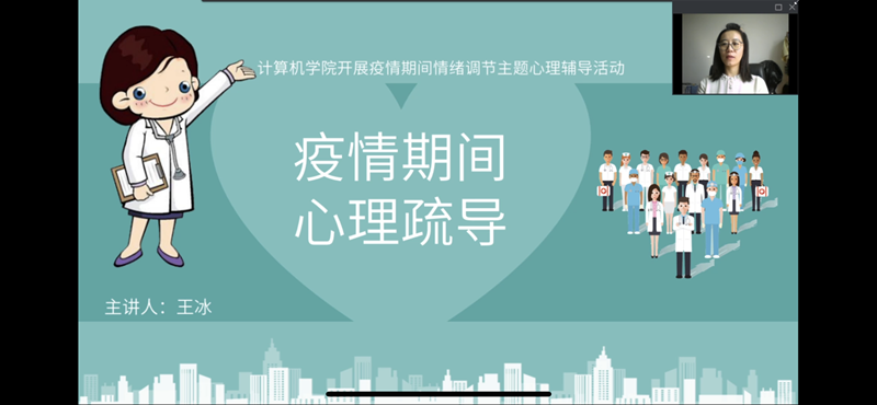 面对学生在疫情中出现的焦虑情绪,更需要辅导员们的稳心、暖心、聚心!计算机学院学生工作队伍组建心理辅导志愿服务队,以学院的心理工作室为依托,共同建立起学院心理委员工作群,构建学院心理健康网格化工作体系,积极关注学生的心理健康。通过微信公众号平台,班级微信群、QQ群、心理健康热线、《致学生家长的一封信》、带领学生拍摄疫情防控宣传短片等多渠道,用最贴近学生的方式为学生提供心理的庇护和防疫知识的传播。制定了无接触心理面谈咨询、心理健康状况摸排、心灵微课堂、心理危机预警和转介等详细工作预案,在延续日常心理健康教育工作的基础上,重点做好返校后被隔离观察学生、毕业生的心理健康调查,按照“一生一策”建立学生心理台账,严格执行学院心理健康“日报告”制度,切实维护学生心理健康。心理辅导志愿服务队成员把所学的专业心理知识技能融入疫情防控工作中,与学生互动交流,为学生提供必要的情感、心理支持,教给学生情绪疏导的方法,用爱和科学的力量架起了一座“连心桥”。帮助学生以自信乐观的心态面对困难,做一名生命健康的守护者、认真笃学的修行者,游必有方的识图者。