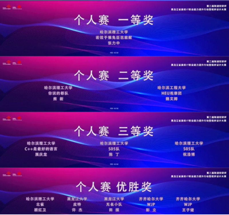 本届大赛以“提升实践能力,培养奋斗精神,促进留省就业”为主题,本着发现IT精英,树立龙江优质企业品牌,营造高校毕业生立足龙江就业氛围的理念,为我省计算机相关专业大学生搭建了探索IT领域前沿知识、技术应用和发展方向的大平台,搭建了展示学术研究和实践成果的大舞台。个人赛的参赛选手还获得了中国联通哈尔滨软件研究院校招PASS卡等奖励,助力选手们在毕业前就实现高质量就业。