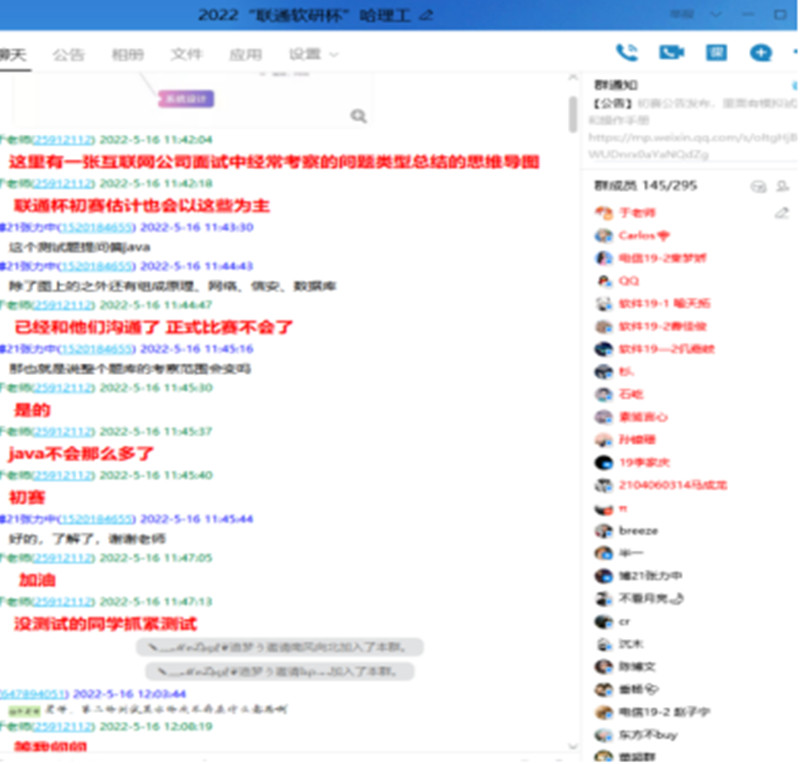教师通过线上QQ群进行赛事指导