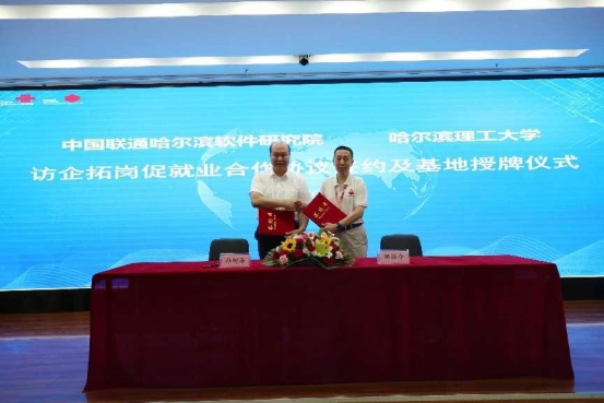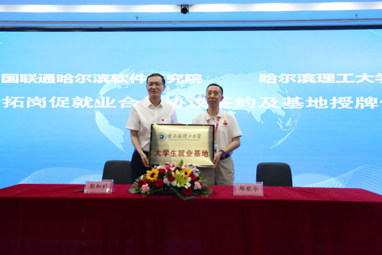 座谈会后的签约仪式上,学校党委副书记郭加利为中国联通哈尔滨软件研究院授予77779193永利官网“大学生就业基地”的牌匾。纪委书记孙树海代表学校与联通哈尔滨软件研究院签订《校企共建就业实习基地协议书》。学校党委学生工作部副部长任佳伟与联通哈尔滨软件研究院人力资源部经理张维作为双方单位的基层党支部书记共同签署了产学研党支部共建协议。