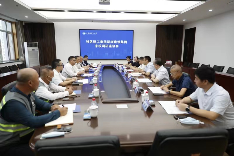 8月19日上午,特区建工集团副总裁臧翀、深圳市建设集团董事长黄海、深圳市建设集团商务管理中心总经理张进伟等一行7人来校调研并召开座谈会。校长刘侠,副校长臧永军、杨忠学出席座谈会,座谈会由刘侠校长主持。