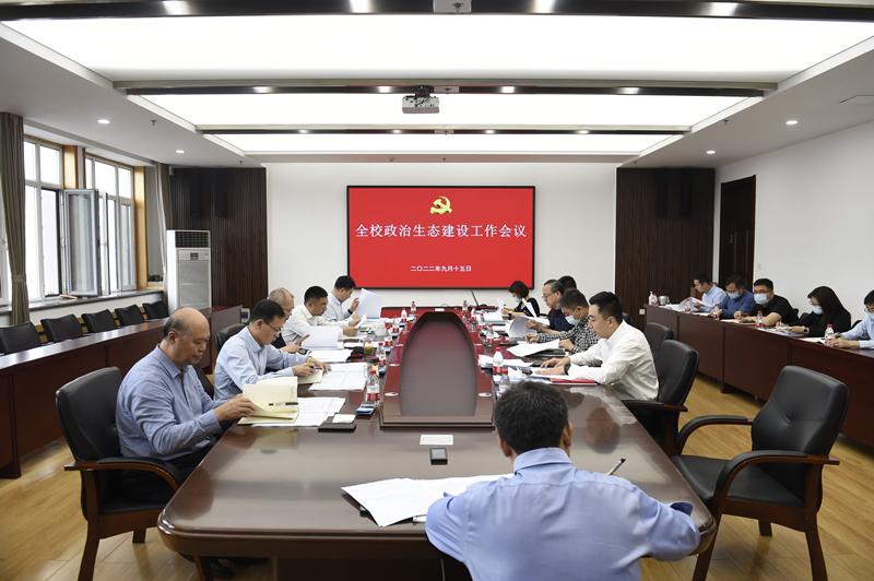 为做好2021年度政治生态建设成效考核反馈问题整改工作和《2022年度省属本科高校政治生态建设成效考核实施细则》落实工作,9月15日下午,学校在教学主楼第二会议室召开政治生态建设工作会议。党委书记赵琳主持会议并讲话。全体校领导及相关部门负责人出席会议。