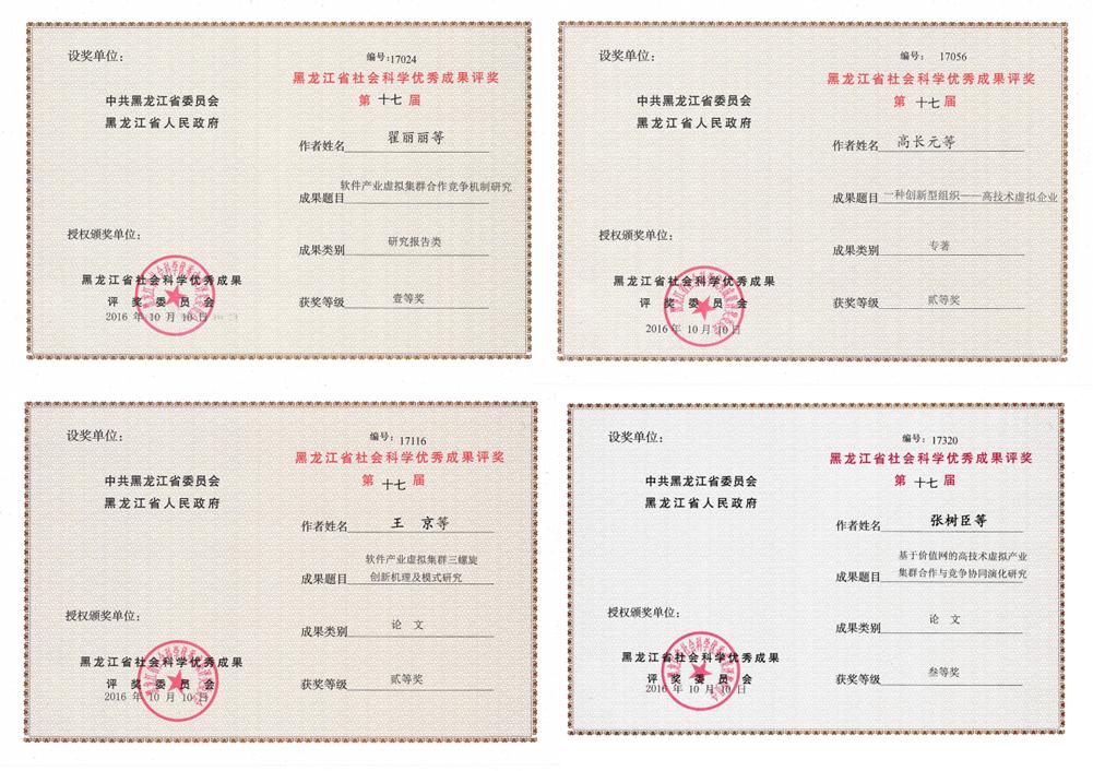 荣获黑龙江省社会科学优秀成果奖