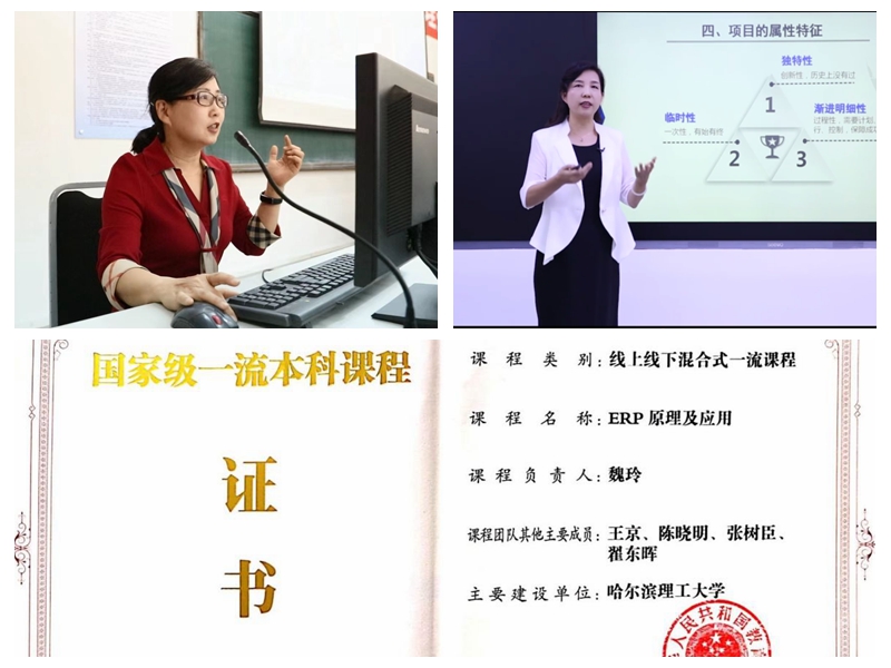 持续推进一流本科课程建设,切实打造优质金课。四门课程先后获批国家级及省级一流课程、课程思政示范课程建设项目,两门课程获批校级一流课程建设项目。2020年魏玲教授主讲的“ERP原理及应用”获批首批“国家级线上线下混合式一流课程”,是学院首个自主建设的国家级“金课”;2021年李长云教授主讲的“IT项目管理”获批“黑龙江省线上线下混合式一流课程”,并被推荐角逐国家级“金课”。在学院一流课程改革与建设项目的支持下,2023版培养方案瞄准数字经济背景,拟新增“人工智能”“Python基础与应用”“商务数据分析”“大数据可视化”等课程,为打造龙江数字经济新蓝海提供人才智力支持。