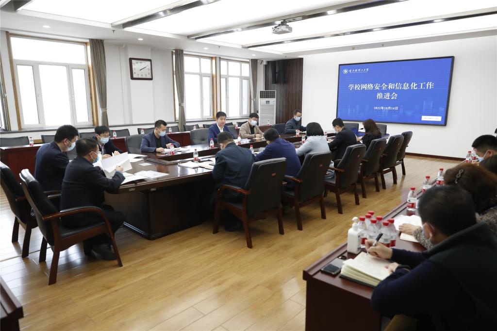为进一步贯彻落实学校《智慧校园“十四五”建设规划》,全面推进学校信息化建设,做好网络与信息安全保障工作,10月14日下午,学校在教学主楼第二会议室召开网络安全和信息化工作推进会。学校副校长、网络安全和信息化领导小组常务副组长杜军出席并主持会议,学校网络安全和信息化领导小组成员单位负责人、各党政管理机构分管网信工作处级领导和各直属单位、教学单位分管网信工作处级领导参加会议。