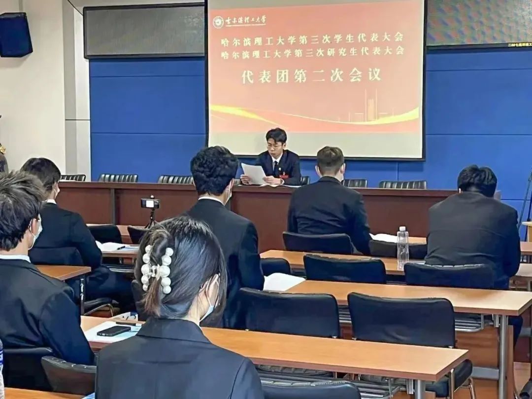 开幕式上,哈尔滨工程大学学生会执行主席王浩屹同学和黑龙江省学联驻会主席黄亚南同学分别代表兄弟院校、省学联致辞,预祝大会圆满成功。会上,校团委副书记曹石讲话。她向大会的召开表示热烈的祝贺,表达了对过去一年学生会组织工作的肯定,并向全校各级学生组织和学生干部提几点希望,一是坚定理想信念,夯实信仰根基。要全面学习党的二十大精神,要求大家争做“五个模范”,做到“五个带头”,养成精心学习、潜心钻研的好习惯,深切感悟习近平新时代中国特色社会主义思想的真理伟力和实践伟力,更好地团结青年、引领青年永跟党走,帮助坚定青年理想信念、提升青年精神境界。二是践行求真务实,勇担时代重任。各级学生会、研究生会要高举中国特色社会主义伟大旗帜,认真学习贯彻党的二十大精神内涵,广泛开展“学习二十大、永远跟党走、奋斗新征程”主题教育实践活动,不断提高为同学服务的能力和水平。三是激发组织活力,谱写崭新篇章。始终把同学的满意度作为检验工作的标尺,紧紧抓牢“我为同学做件事”的载体契机,听取、收集同学在各个方面的普遍需求和现实困难,为广大同学提供实实在在的帮助,团结带领、有效帮助同学们健康成长、全面发展。