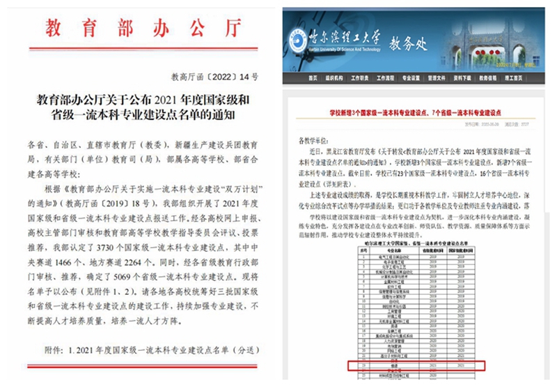 荣获国家级一流本科专业建设点