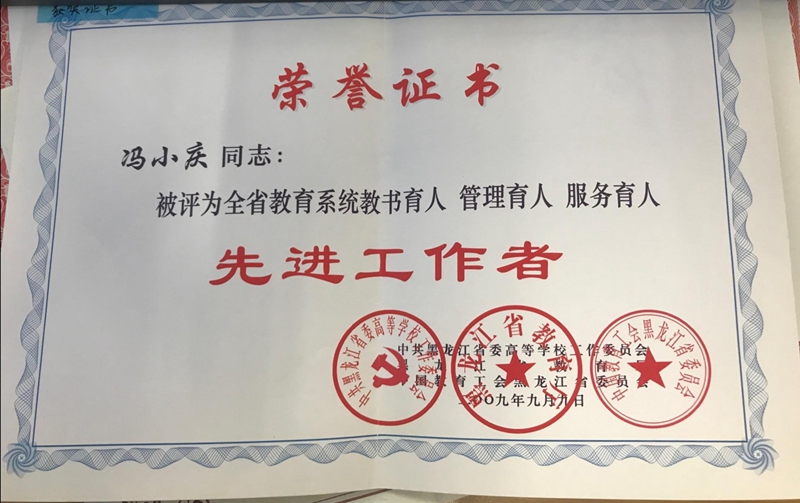 冯小庆老师获全省教育系统“三育人先进工作者”