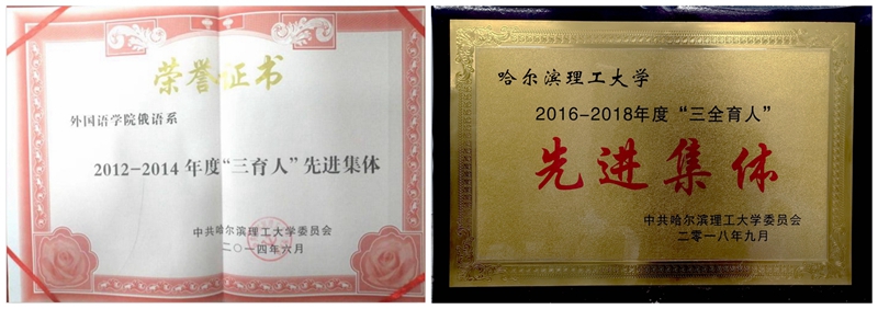 思政竞赛获佳绩。获“外研社杯”全国高校俄语专业课程思政教学设计大赛一等奖1项、二等奖1项,黑龙江省首届课程思政比赛本科组特等奖、研究生组一等奖、优秀案例2项。