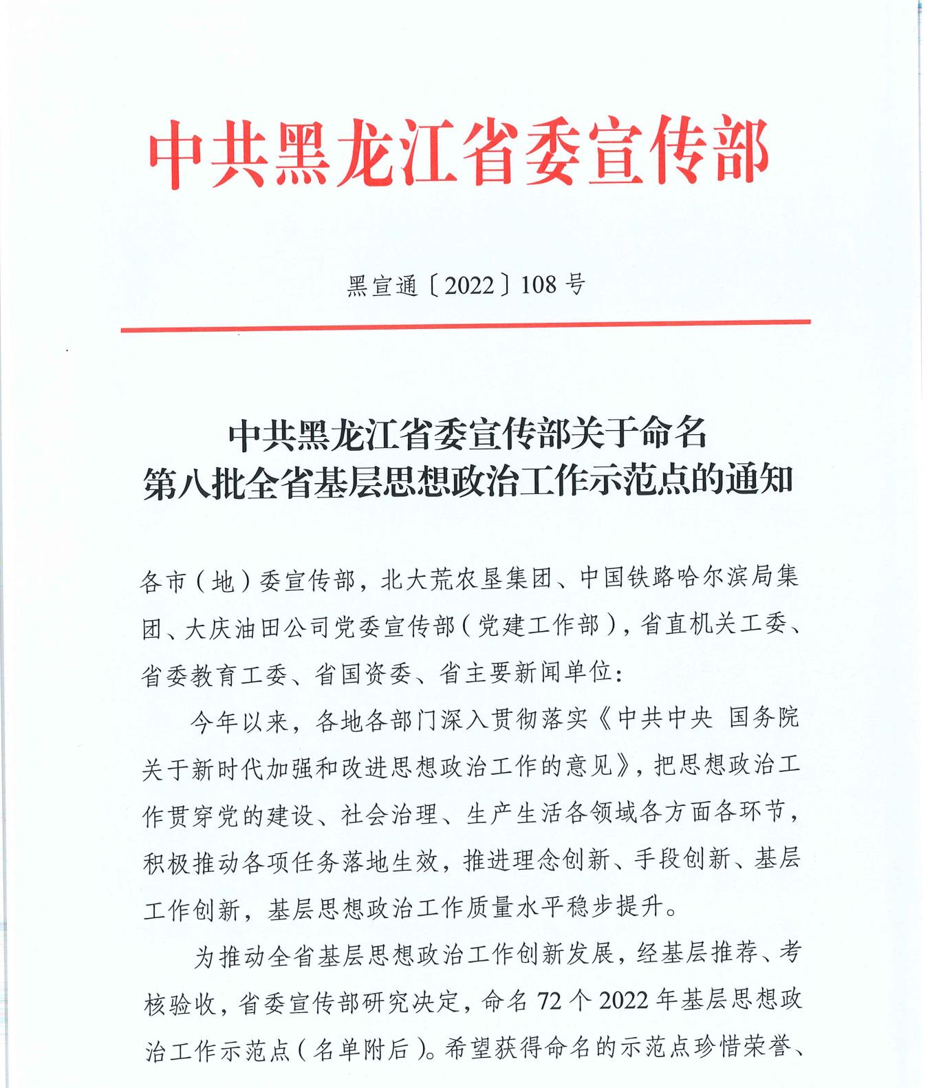 近日,省委宣传部发布《中共黑龙江省委宣传部关于命名第八批全省基层思想政治工作示范点的通知》,永利官网电气与电子工程学院被命名为全省基层思想政治工作示范点。