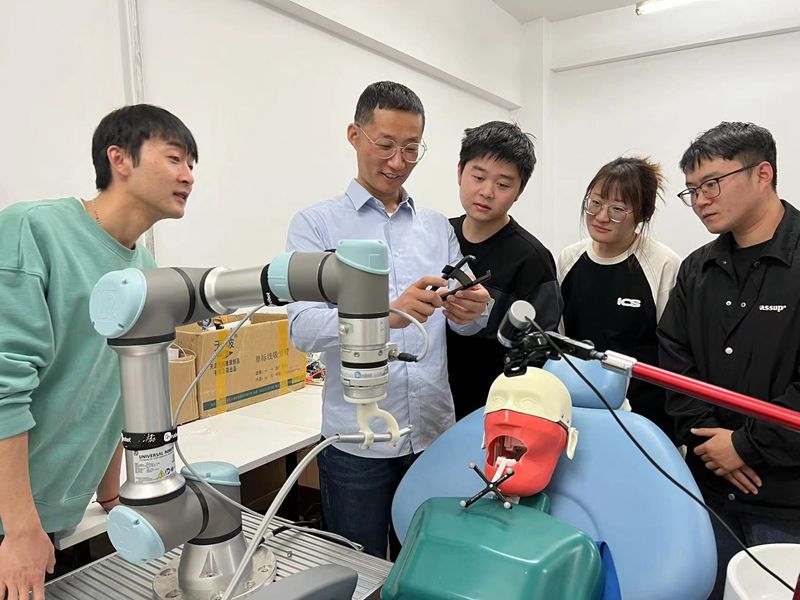 11年前,姜金刚毕业留校后,致力于口腔机器人研究。其所在医工融合智能机械团队,面向医学诊断和治疗的迫切需求,持续开展口腔机器人、微创介入机器人的攻关研究,在“口腔数字化表达”“弓丝-托槽-牙槽骨力传递机理”“针刺组织穿刺机理”等方面取得了关键创新。研制的国内首套多操作机全口义齿排列系统和正畸弓丝弯制机器人系统,在哈尔滨德尔美齿和佛山碧盈等医疗器械企业得到转化,在北大口腔医院、哈医大附属二院得到了应用。