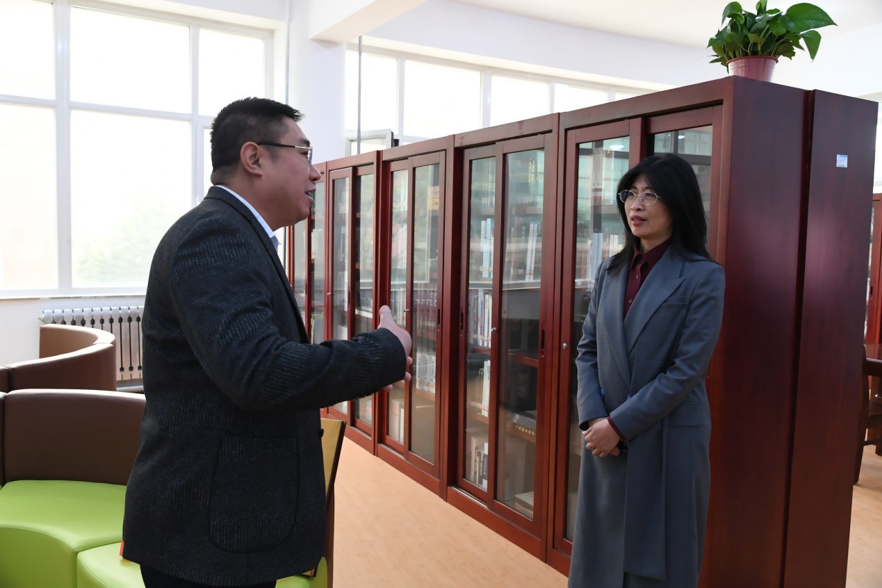 荣成学院向隋晓丽主席介绍“职工书屋”情况
