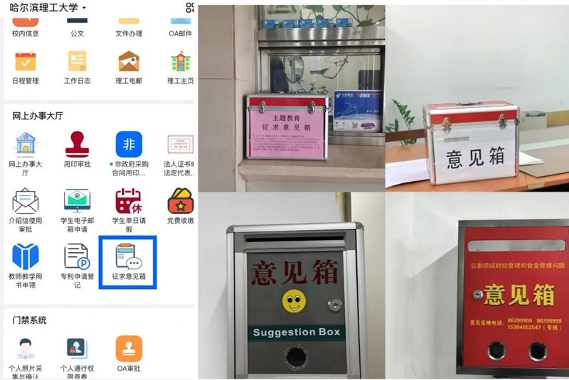 各单位设立的征求意见箱以及学校设立的线上征求意见箱
