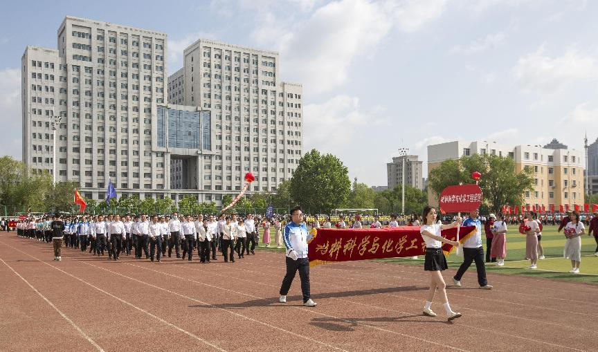 伴着初夏的暖阳,各单位方阵依次通过主席台接受检阅,运动员们昂首阔步、精神饱满、斗志昂扬、英姿飒爽、口号嘹亮,在前期精心的准备过程中以“步履铿锵,强体魄之魂;赛场驰骋,耀时代之光”的理念和“更快、更高、更强——更团结”的奥林匹克精神作为踔厉奋发、笃行不怠的内在动力,展现了理工师生顽强拼搏、奋发进取、永不言弃、超越自我的精神风貌。主席台和观众席向运动健儿们报以热烈的掌声。国旗护卫队目光如炬,步履铿锵,走在检阅队伍的最前方,庄严护送国旗入场。裁判员、运动员、各单位方阵入场后,举行了升国旗、奏国歌、鸣礼炮和升校旗、奏校歌仪式。