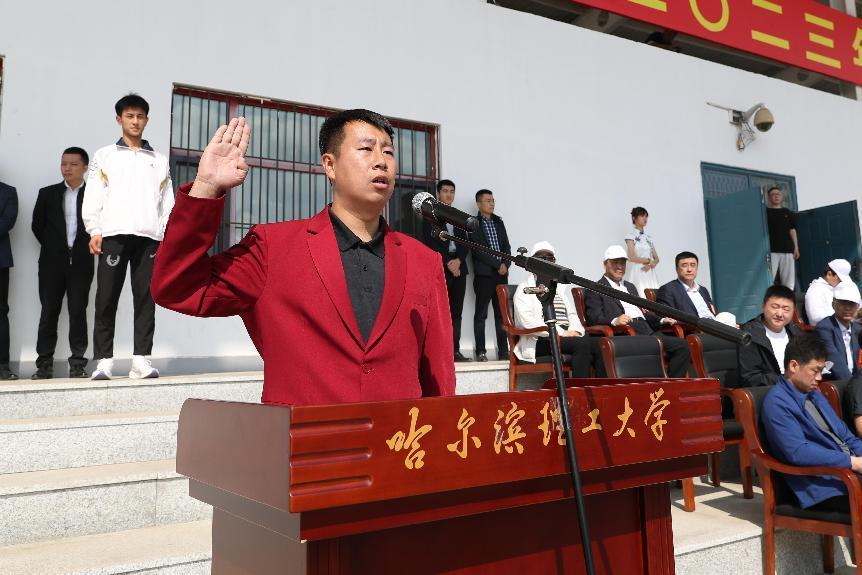 机械动力工程学院富清荣同学和体育教学部王春雨老师分别代表参赛运动员和裁判员宣誓。
