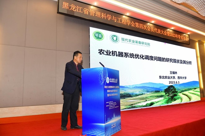王福林教授报告了农业机器系统优化调度问题的研究现状,他指出,农机系统优化调度问题包括跨区作业调度、生产单位全年系统优化调度等方面的系列问题。他提出,在现有研究基础上,应从农业机械化生产作业计划的制定与生成方式、农业生产单位全年农机系统动态多阶段优化调度及无人农场农机系统动态多阶段智能优化调度等方面开展进一步研究。