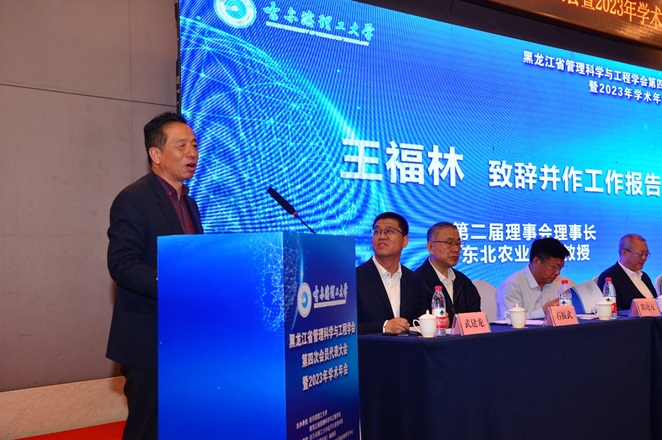 东北农业大学王福林教授致辞并作《黑龙江省管理科学与工程学会第二届理事会工作报告》