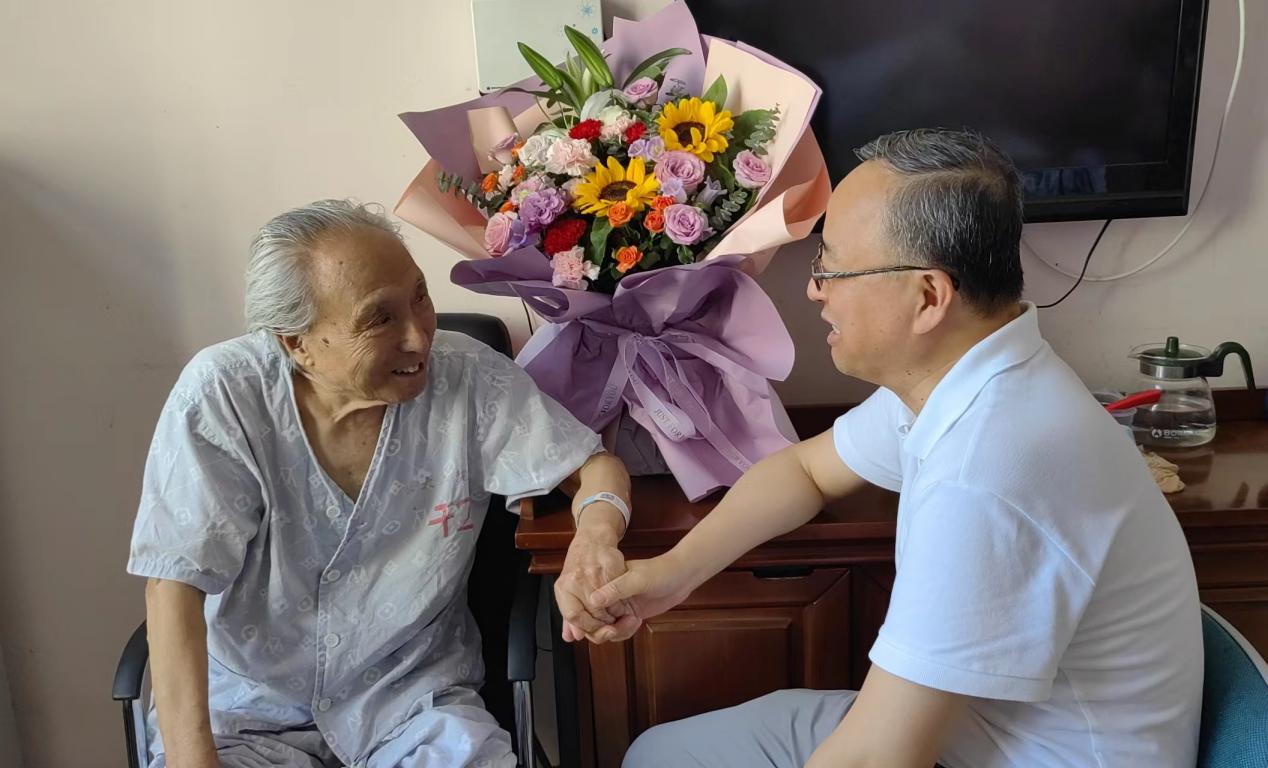 臧永军与任善之教授进行了亲切的交流,动情地向任善之教授询问身体状况,了解生活状态,并代表学校党委祝福任善之教授早日康复。臧永军表示,近年来,学校各项事业取得长足进步,综合办学水平稳步提升;任善之教授倾注毕生心血的材料科学与化学工程学院在最新的学科评估过程中,材料科学与工程学科实现跨越式进步。回望过去,任善之教授为铸造学科和学校发展做出不可磨灭的突出贡献,是永利官网全体教师学习的榜样楷模。