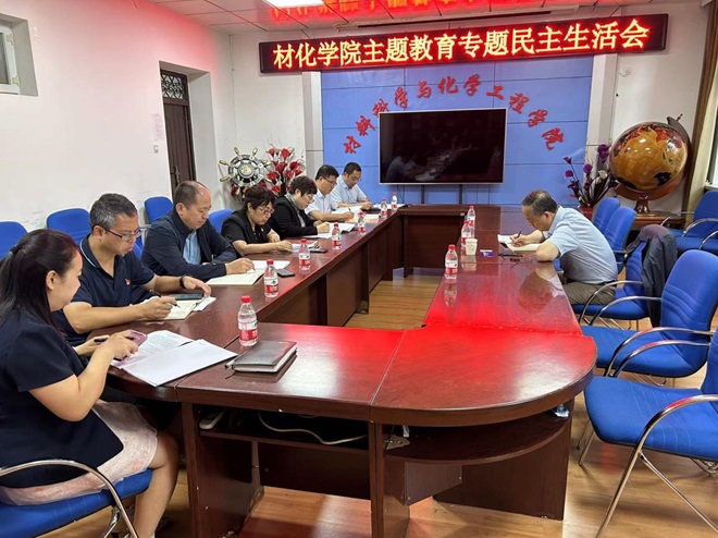 按照党中央部署和省委有关要求,8月29日上午,材料科学与化学工程学院党委领导班子在化工楼427会议室召开学习贯彻习近平新时代中国特色社会主义思想主题教育专题民主生活会。学校副校长臧永军到会指导并作点评讲话,材化学院党委书记张桂玲主持会议,院党委班子全体成员参加会议。
