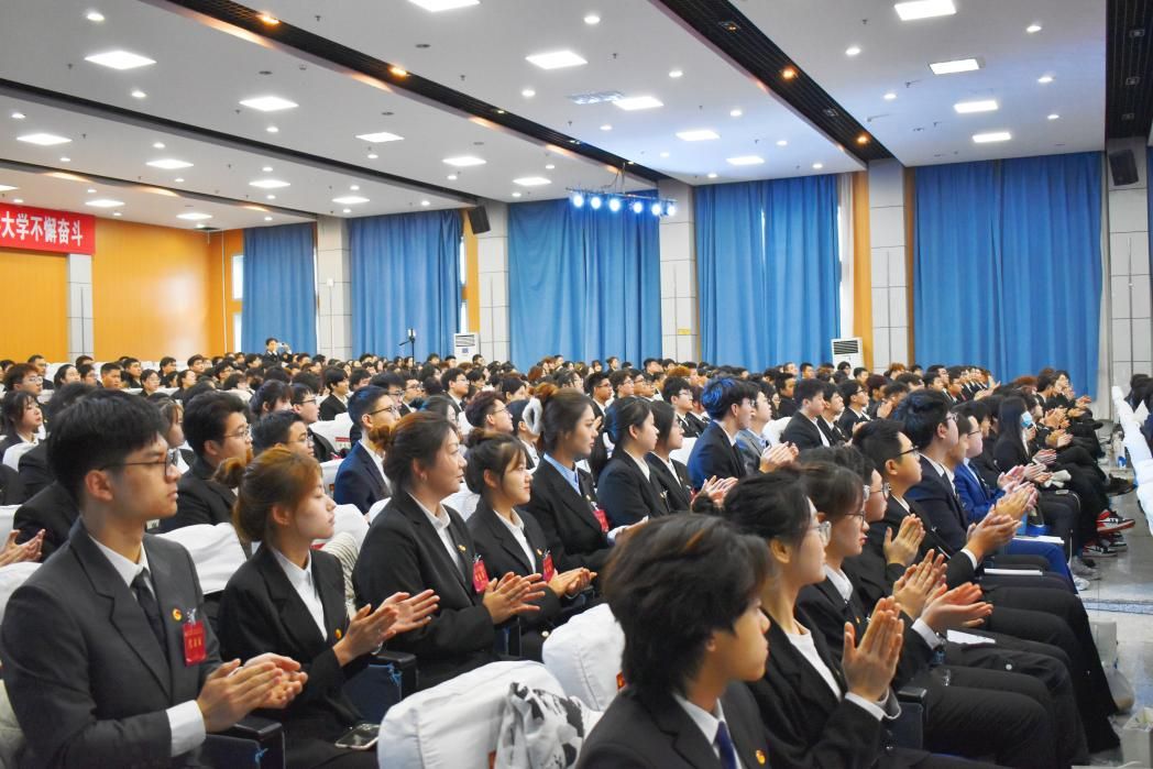 11月18日上午9时,在雄壮的国歌声中,77779193永利官网第四次学生代表大会暨第四次研究生代表大会开幕。校党委副书记赵水杉,省学联驻会主席,组织部、宣传部、学生工作部、团委、教务处、保卫处、体育教学部负责人或派代表出席大会开幕式。各学院党委副书记、团委书记、学生会秘书长和459名学代会代表、研代会代表参加大会,荣成学院线上参会。