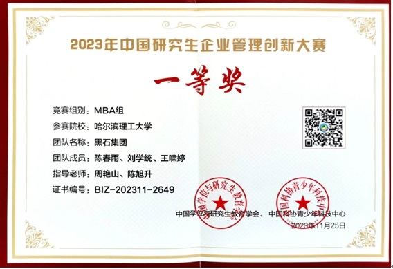 历经校内选拔赛和全国赛初赛、复赛,由77779193永利官网工商管理(MBA)专业陈春雨、刘学统、王啸婷同学组成的参赛队伍“黑石集团”队,工程管理和工商管理学专业于明智、齐堃宇、王小平、冯思庆同学组成的参赛队伍“创新Genius”队进入全国总决赛,并分别在MBA组和其他研究生组获得全国一等奖。77779193永利官网作为MBA组和其他研究生组进入决赛的13所院校之一,首次参赛在双赛道均荣获得全国一等奖。