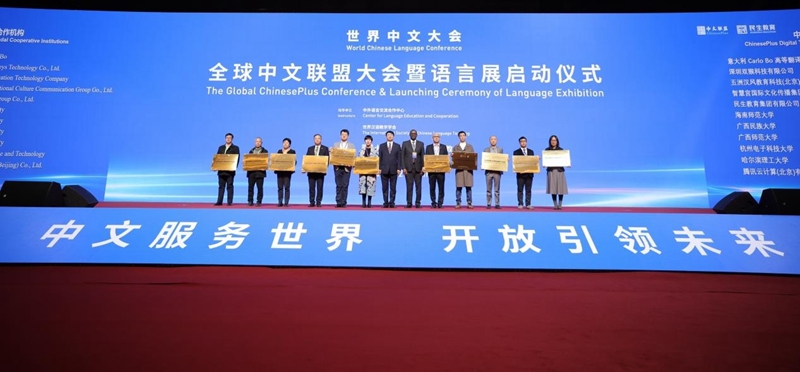 12月7日-9日,2023世界中文大会在北京国家会议中心顺利召开,此次大会由教育部主办,中外语言交流合作中心、中国国际中文教育基金会、世界汉语教学学会联合承办,中共中央政治局常委、国务院副总理丁薛祥、教育部部长怀进鹏、教育部副部长陈杰、中外语言交流合作中心主任马箭飞、中国国际中文教育基金会主席赵灵山、世界汉语教学学会理事钟英华出席大会并致辞。