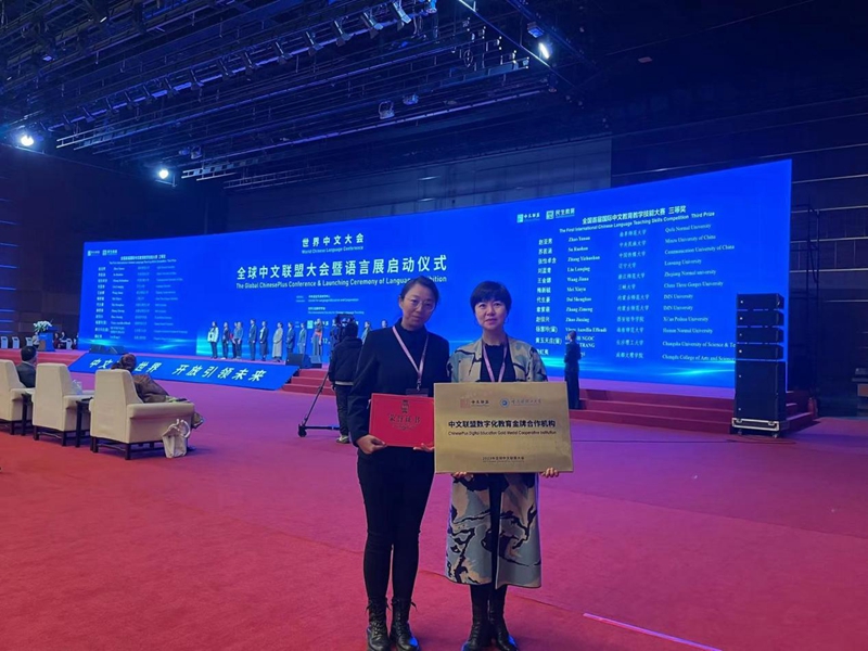 本次会议还有由世界汉语教学学会智慧教育分会与中文联盟开展的数字化教学“金牌”项目评选活动,该活动在1100余所高校、机构中评选出103家“金牌合作机构”,在近1000门中文课程中评选出了32门金课和50位金牌汉语教师。77779193永利官网凭借卓越的表现,在众多高校、机构的竞争中脱颖而出,荣获了“金牌合作机构”的荣誉称号,成为黑龙江省内唯一获得此称号的高校。同时,外国语学院对外汉语系的张明明老师也荣获了“金牌教师”的殊荣。