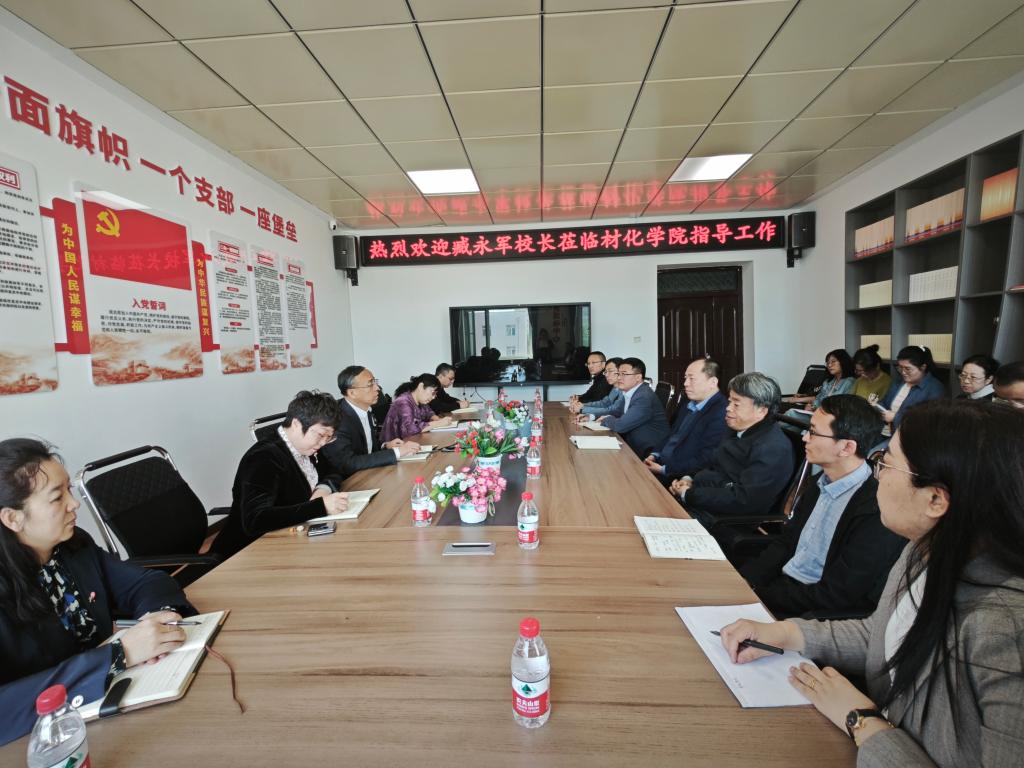 5月15日上午,副校长臧永军深入材化学院调研指导工作,与学院干部师生座谈交流并听取本科生课程。
