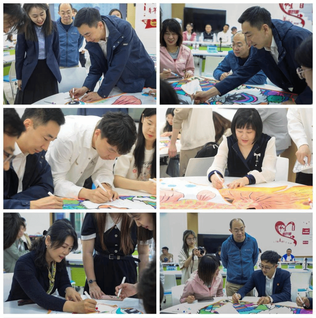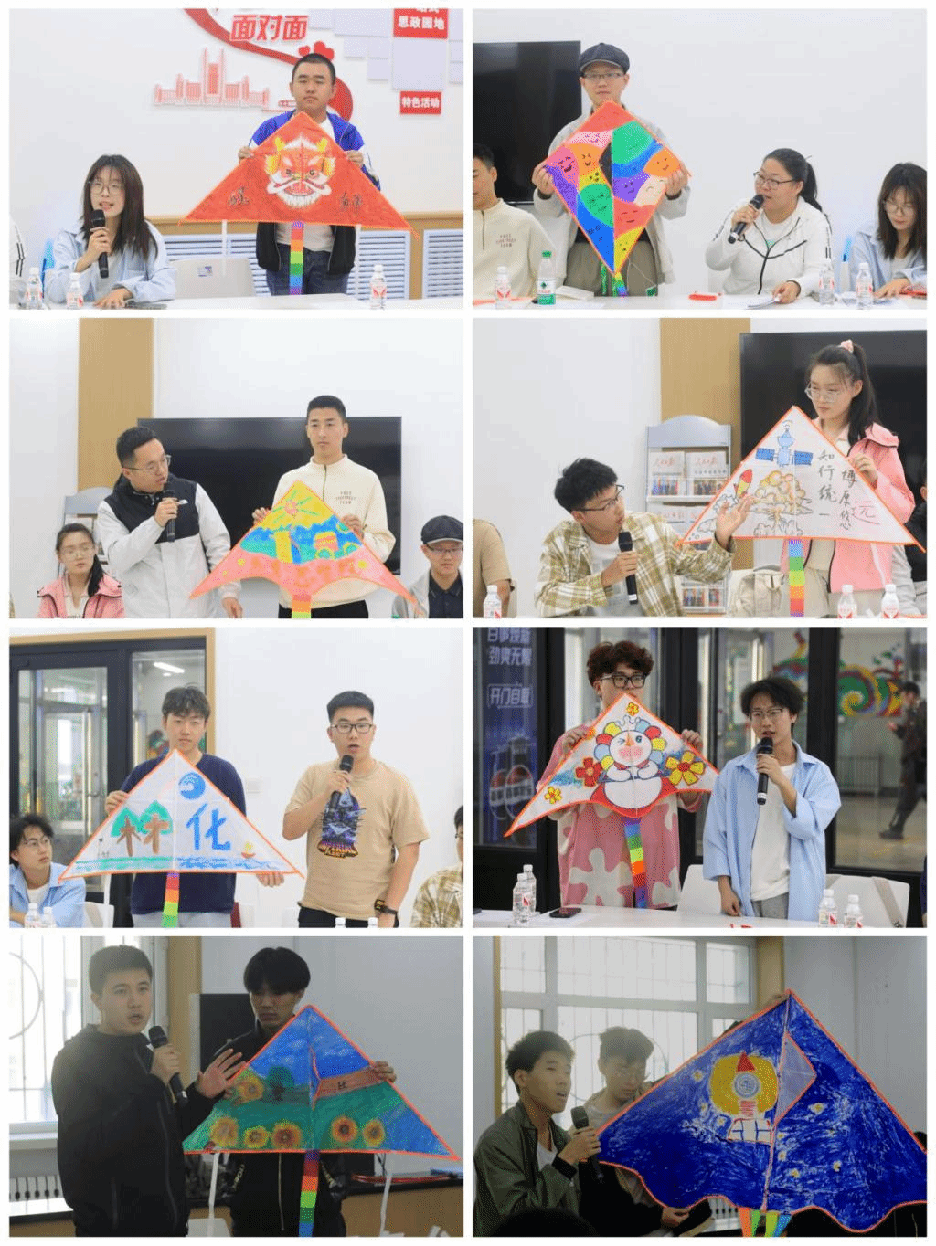 作品展示环节,8组参赛选手代表分别对各自作品的设计理念、元素、内容、寓意作了展示和讲解;约“绘”春天环节与会师生一边共同绘制风筝,一边分享在学校工作、学生、生活的体验,并在风筝上写下了个人理想和对学校美好的祝福;绘制结束后大家来到西区足球场,带着对学校的美好祝愿与期待一同放飞手中的风筝。