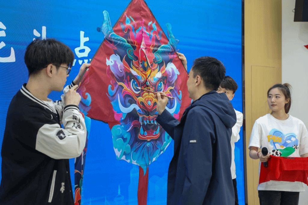 赵水杉为第三届风筝节龙头风筝点“睛”