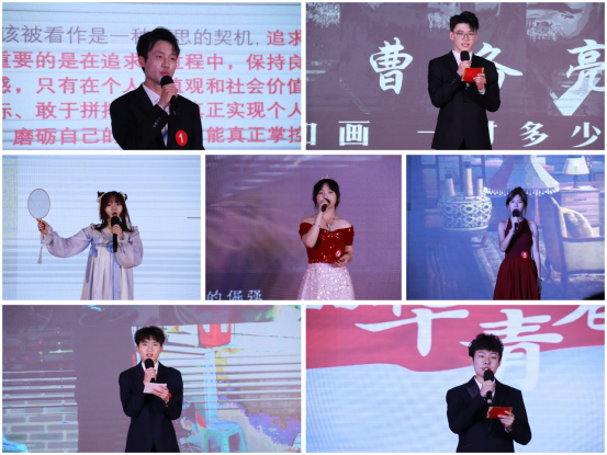 经评委综合评分,最终材料科学与化学工程学院陶思冶获得冠军;理学院关雅轩获得亚军;经济与管理学院魏昊、测控技术与通信工程学院柳涵获得季军;外国语学院钟润芝、外国语学院陈彤、理学院赵自磊获得优秀奖。