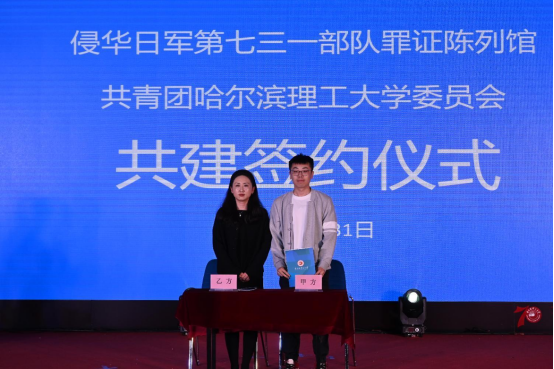 活动中,侵华日军第七三一部队罪证陈列馆宣传教育部主任林花与校团委宣传实践科李晟睿共同签署了爱国主义教育共建社会实践基地合作协议书,双方将在爱国主义教育、人才培养、资源共享、校馆共建等方面开展深度合作,大力拓展社会实践、志愿服务、“第二课堂”活动资源,助力永利官网青年学子传承红色基因、赓续红色血脉,持续推进“大思政课”建设走深走实。