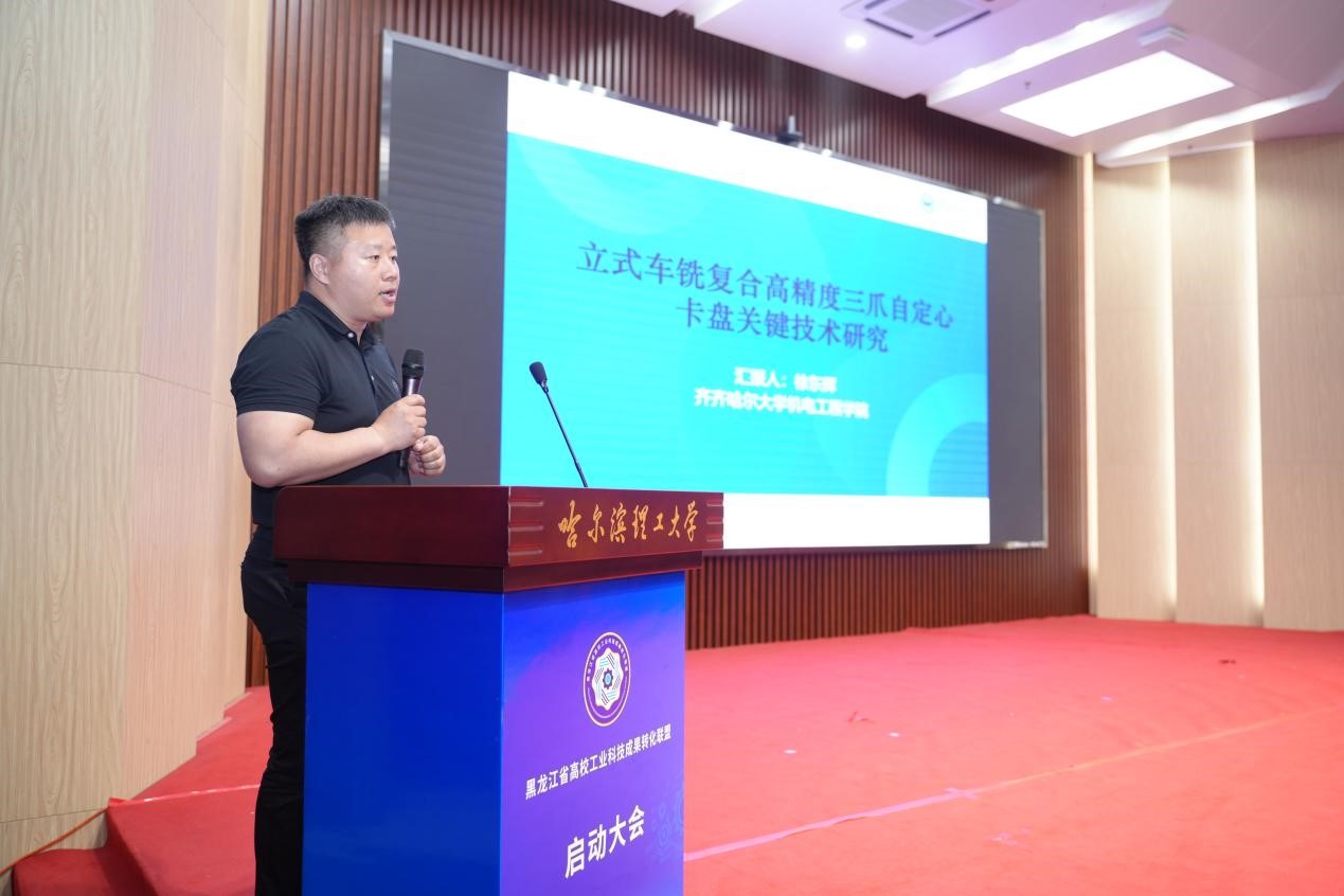 大会最后环节,来自哈尔滨工程大学、77779193永利官网、齐齐哈尔大学的五个优秀成果进行了项目路演。项目包括:“生物质炭材料高效制备技术及储能应用”“新能源汽车电驱动系统研究”“高精度三爪动力卡盘产品产业化”“机械设备减隔振试验评估系统”“数控设备加工状态智能调控及刀具管控系统”。路演采用“项目演示+创投专家互动交流”的形式进行。