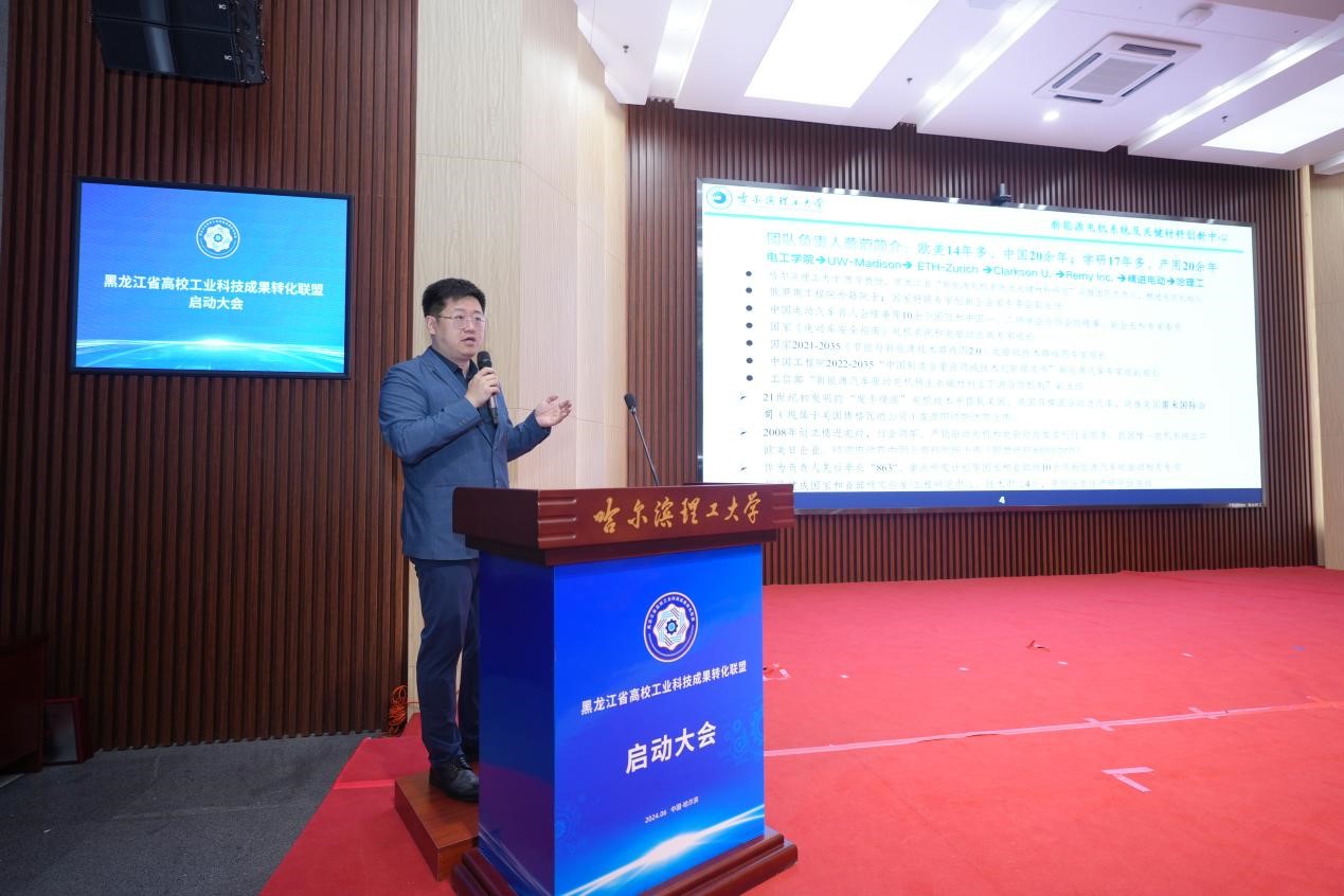 启动大会上,省教育厅副厅长曹叠峰致辞。他指出,联盟的成立是落实《黑龙江省高校科技成果产业化专项行动方案》的一项重要的工作部署,通过壮大科技创新主体,优化创新生态环境,完善技术创新供应链,凝力发挥“聚要素、通路径、促转化、助发展”的作用,有效提升龙江工业科技成果转化效能。就联盟工作,他提出了三点要求,一是要整合创新渠道,搭建科技成果转化“新桥梁”,集聚一批服务科技成果转化的配套资源,实现工业科技成果与产业需求的精准对接;二是要融合多方资源,设立供求服务“蓄水池”,建立科技成果项目库、工业企业信息库和专家信息库;三是要开拓多元化发展,另辟联动合作“新路径”,建立政、校、研、投等常态化沟通机制与合作联动机制。希望联盟各成员单位紧紧围绕“着力建设创新龙江”的目标,充分发挥各自优势,加强沟通协调,通力合作,合力打造资源共享、开放协同的高水平合作平台。