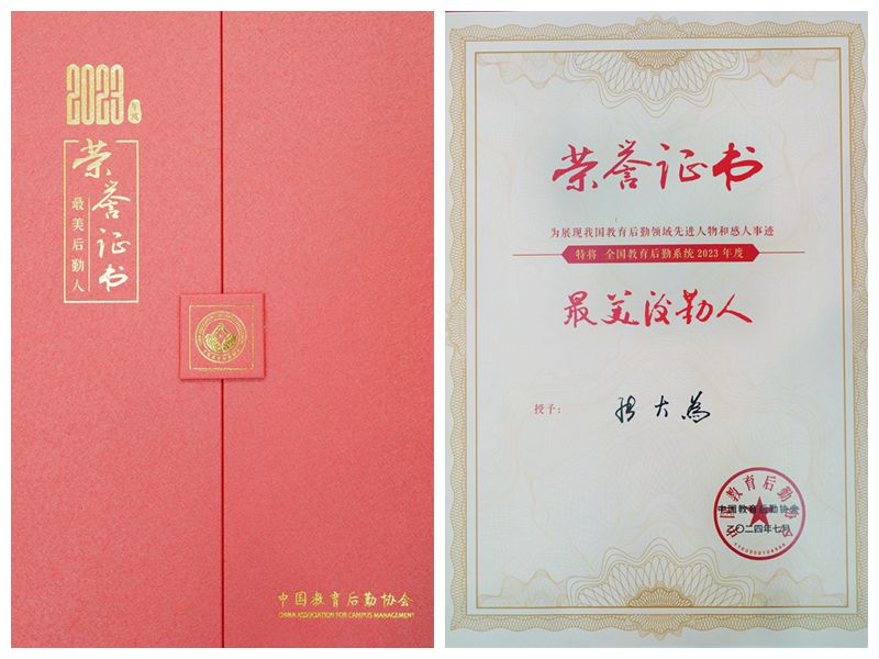 张大为获评全国教育后勤系统2023年度“最美后勤人”